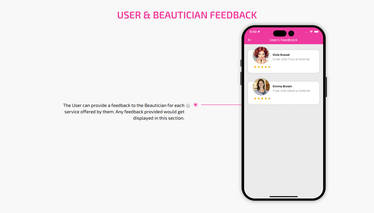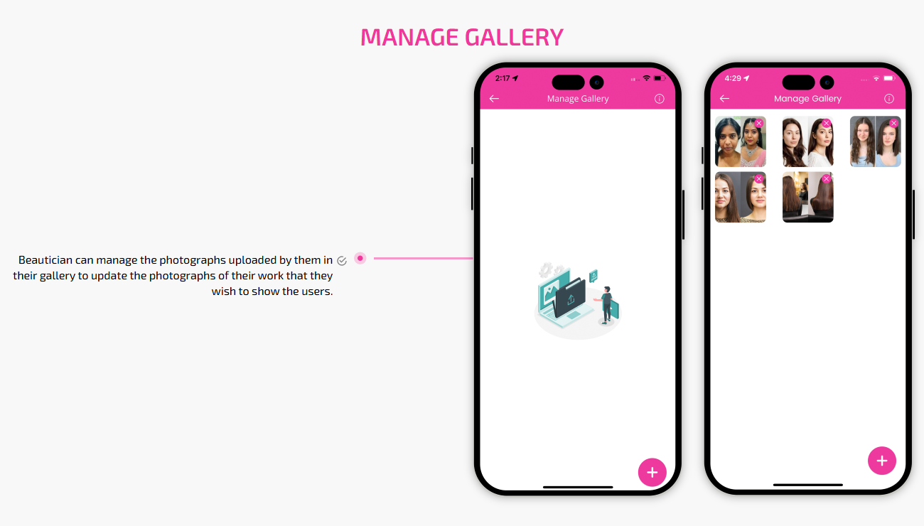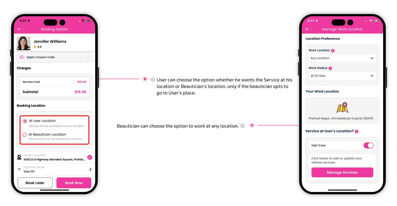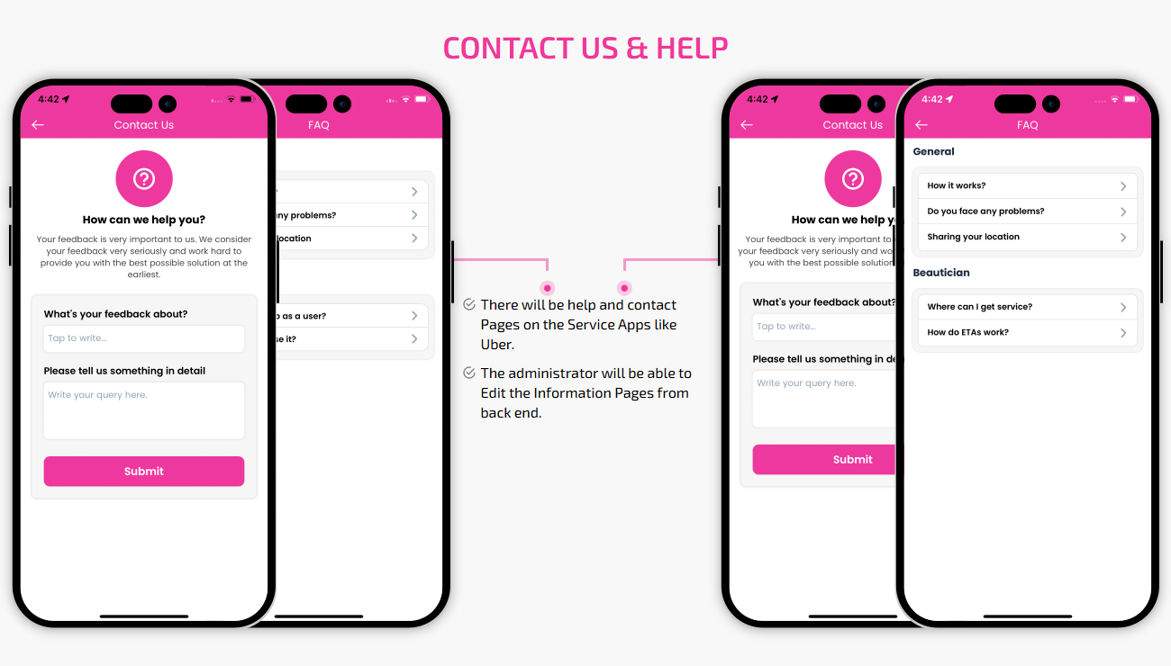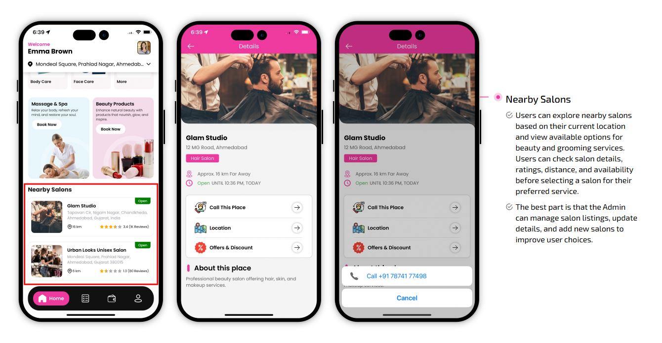 Supervising and managing all the salons and beauticians' activities from the single dashboard Through this panel, the admin also responds to the feedbacks of the customers and provides them with the best possible solution. This is generally a web-based dashboard through which he can also see reports and analytics at regular intervals of time.