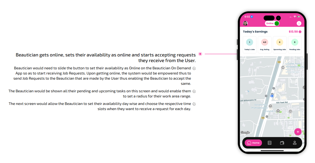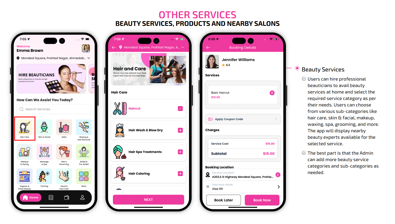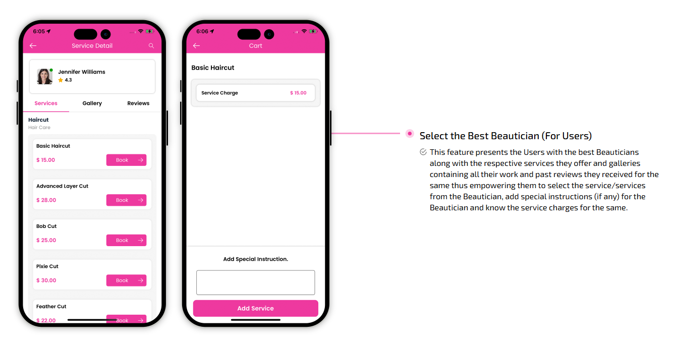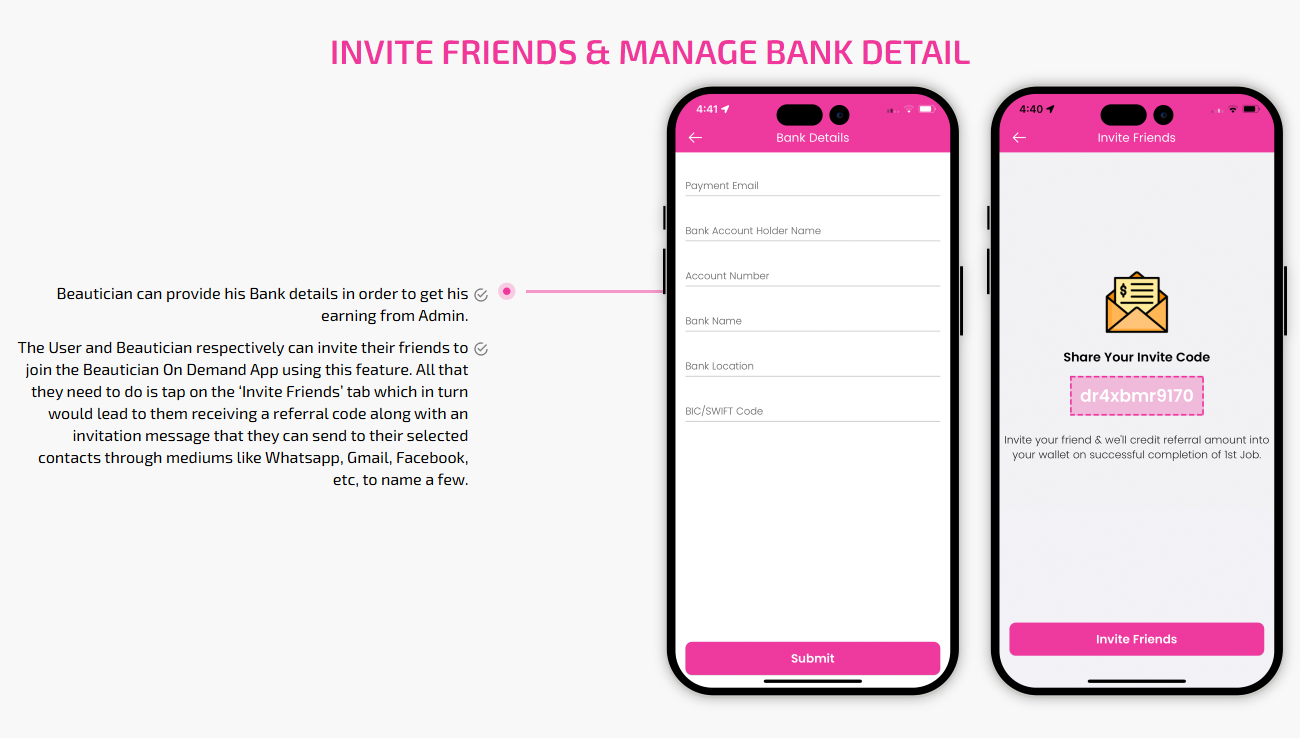 Supervising and managing all the salons and beauticians' activities from the single dashboard Through this panel, the admin also responds to the feedbacks of the customers and provides them with the best possible solution. This is generally a web-based dashboard through which he can also see reports and analytics at regular intervals of time.