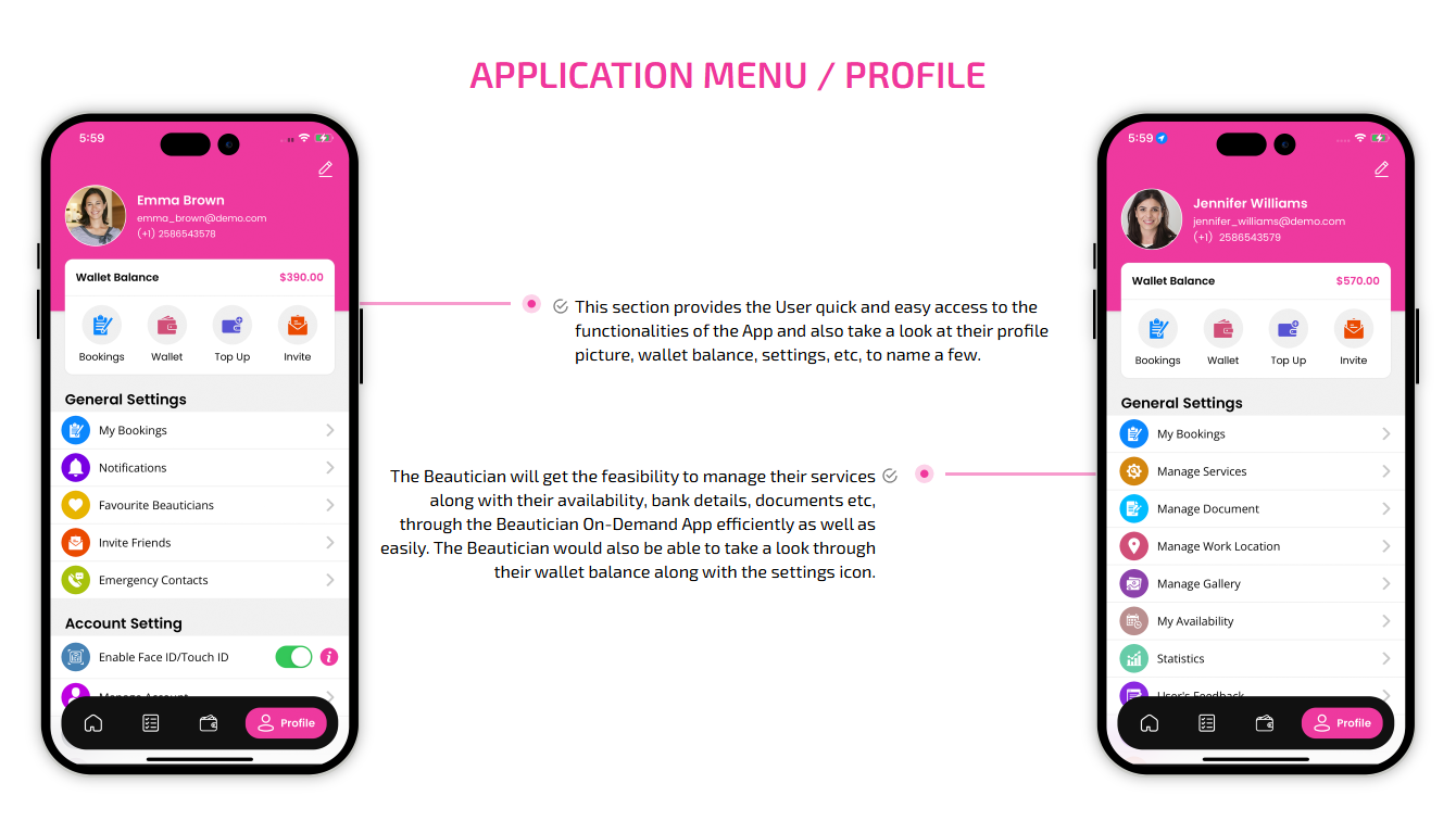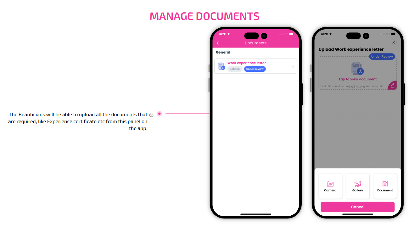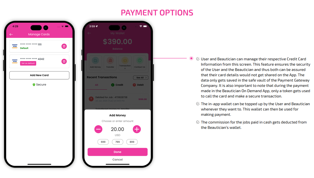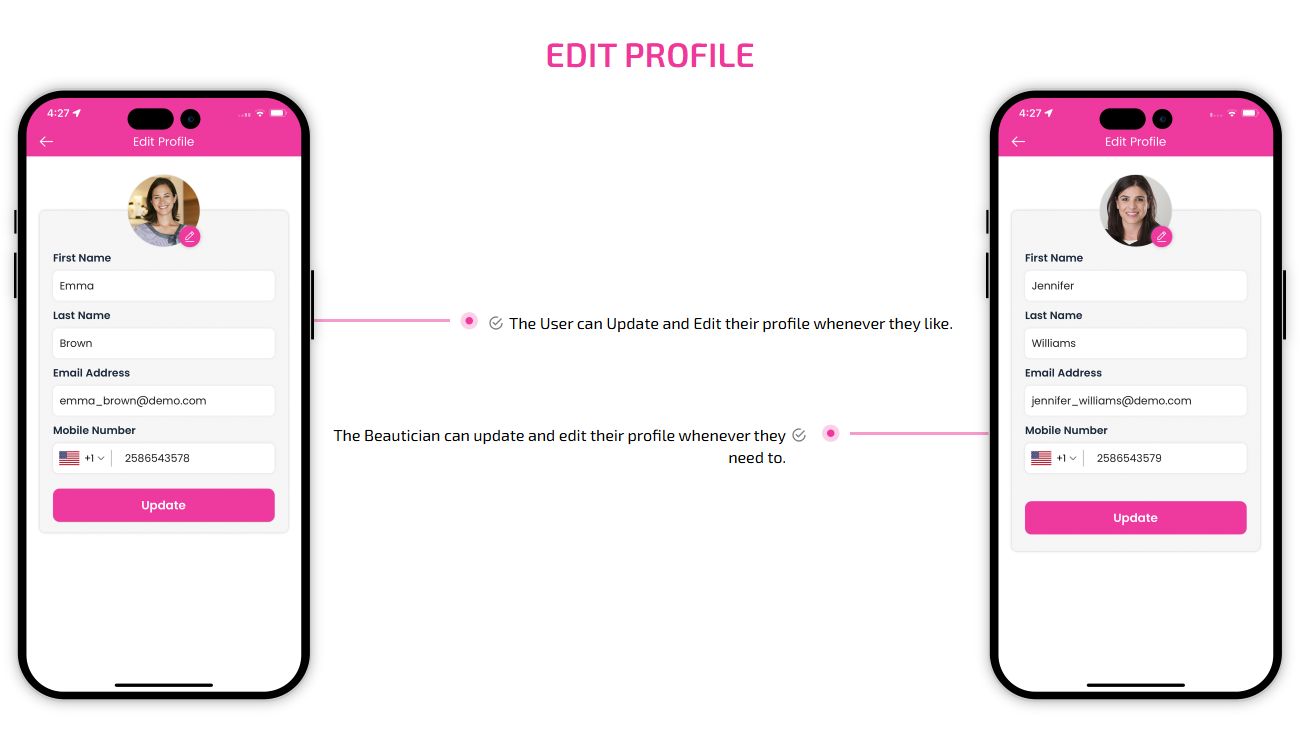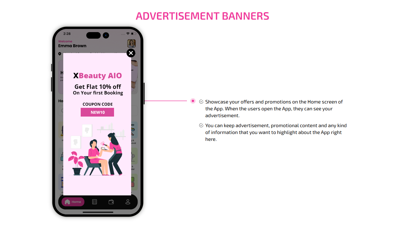 Supervising and managing all the salons and beauticians' activities from the single dashboard Through this panel, the admin also responds to the feedbacks of the customers and provides them with the best possible solution. This is generally a web-based dashboard through which he can also see reports and analytics at regular intervals of time.
