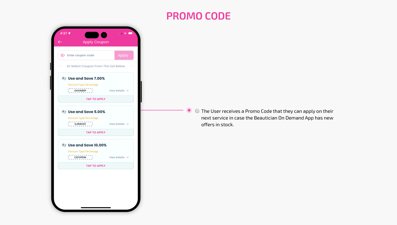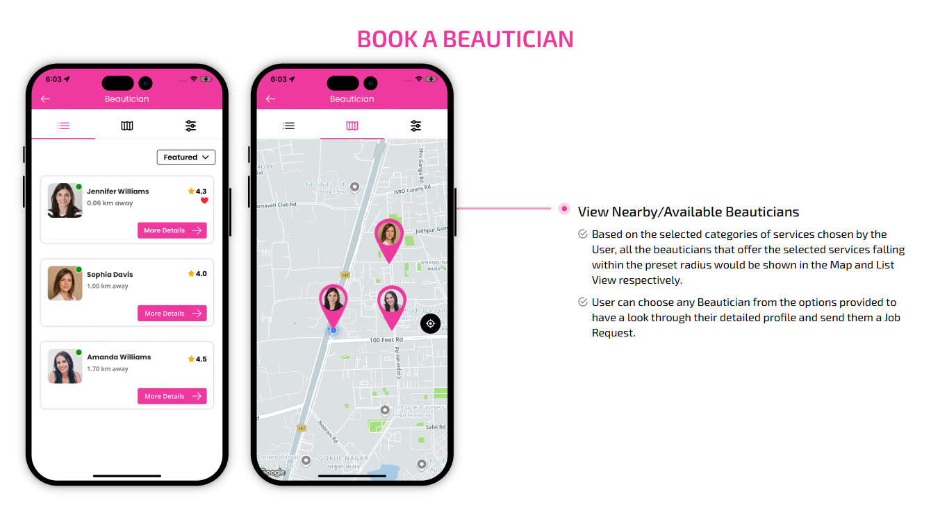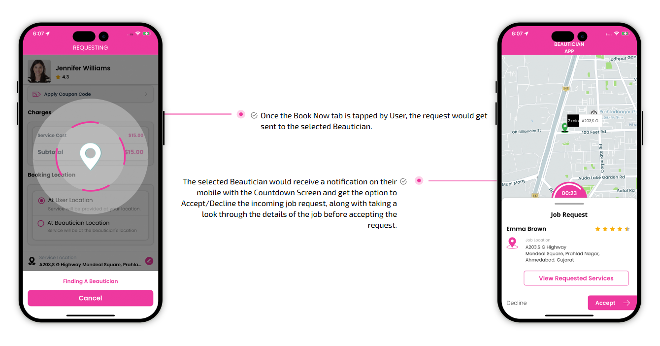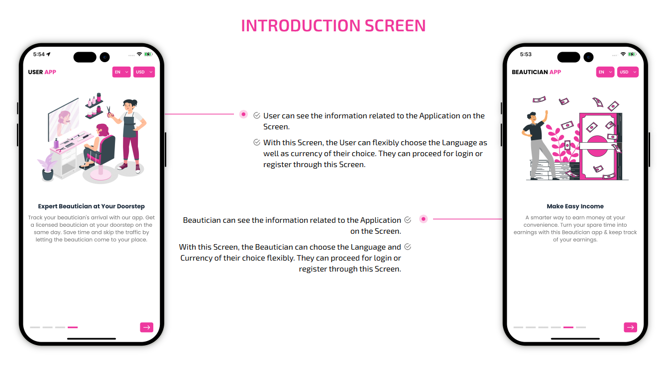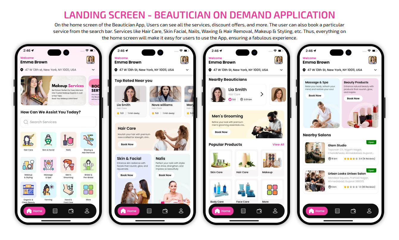 SCREEN FLOW OF ON-DEMAND BEAUTICIAN WEB APP