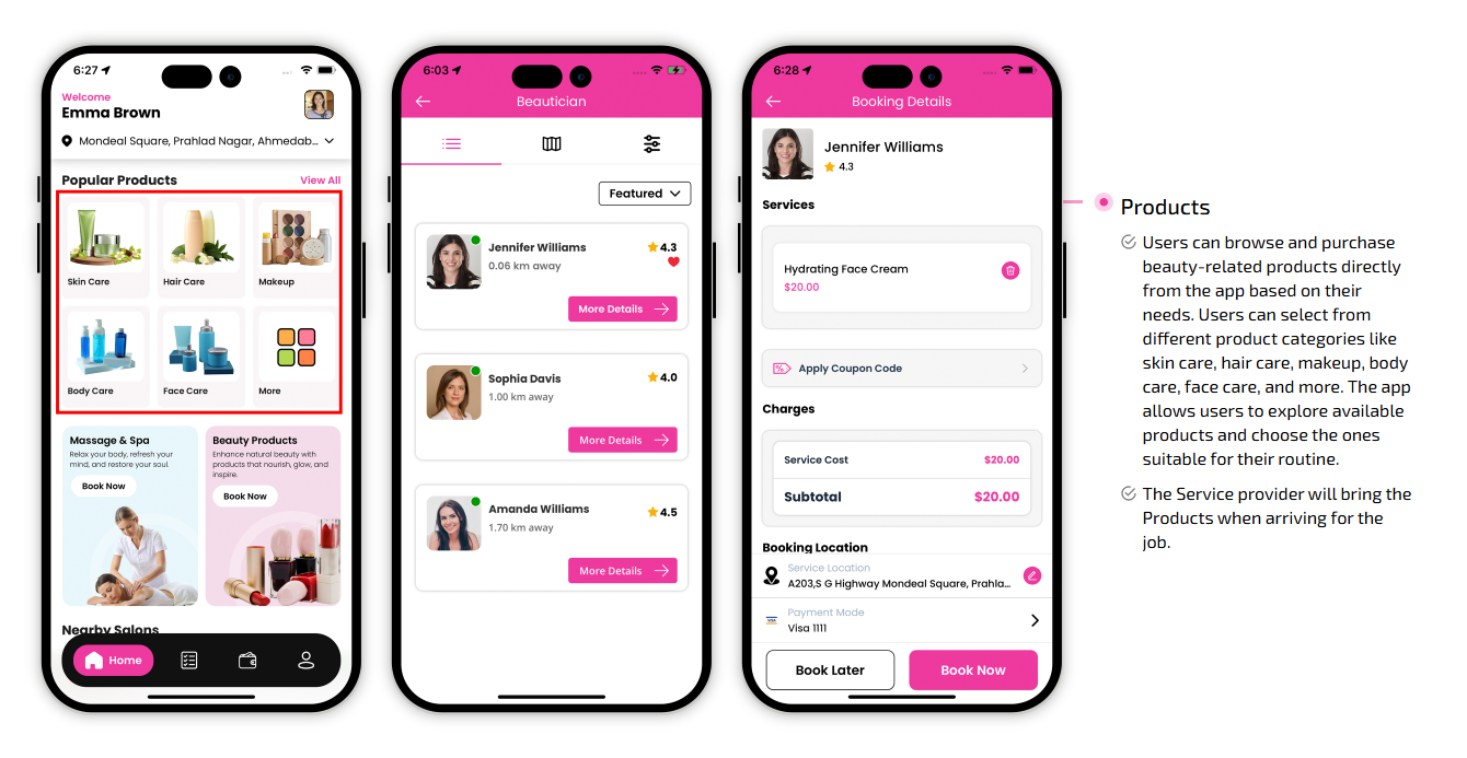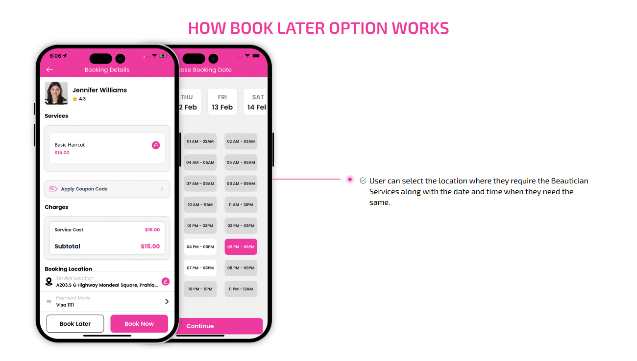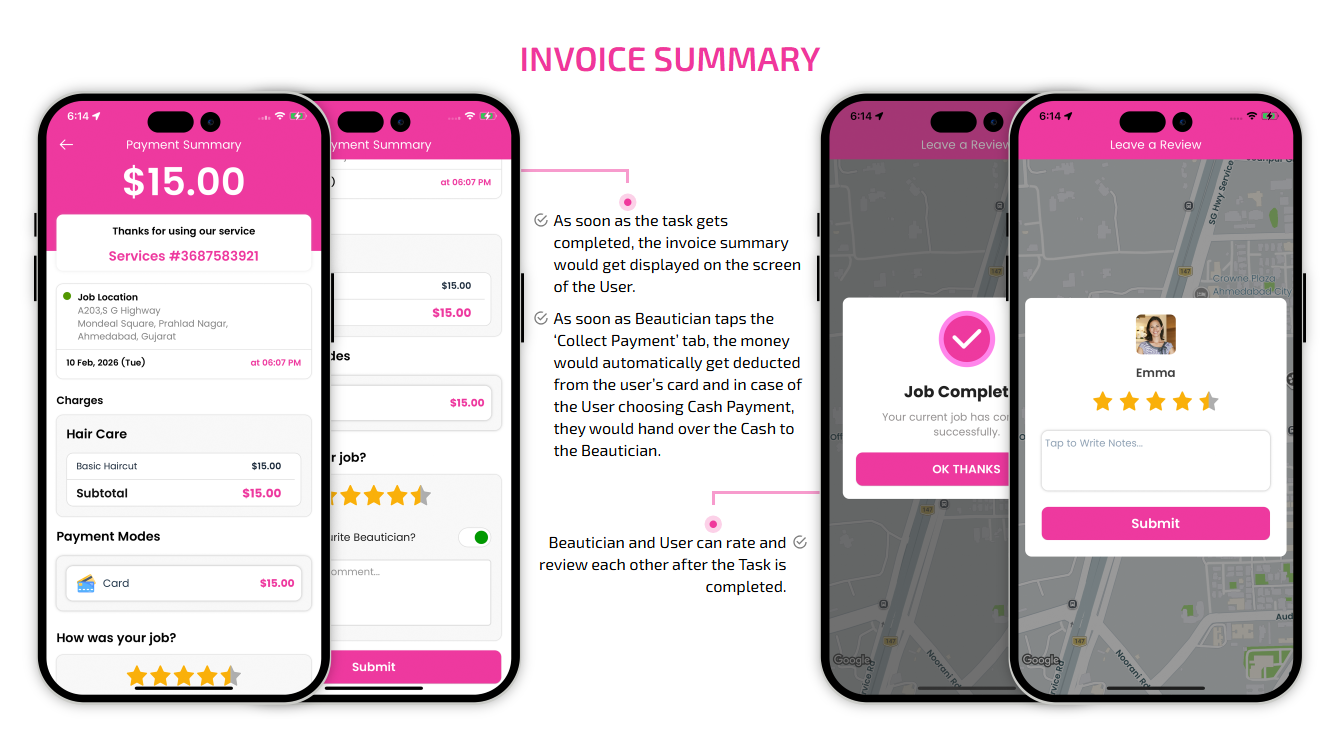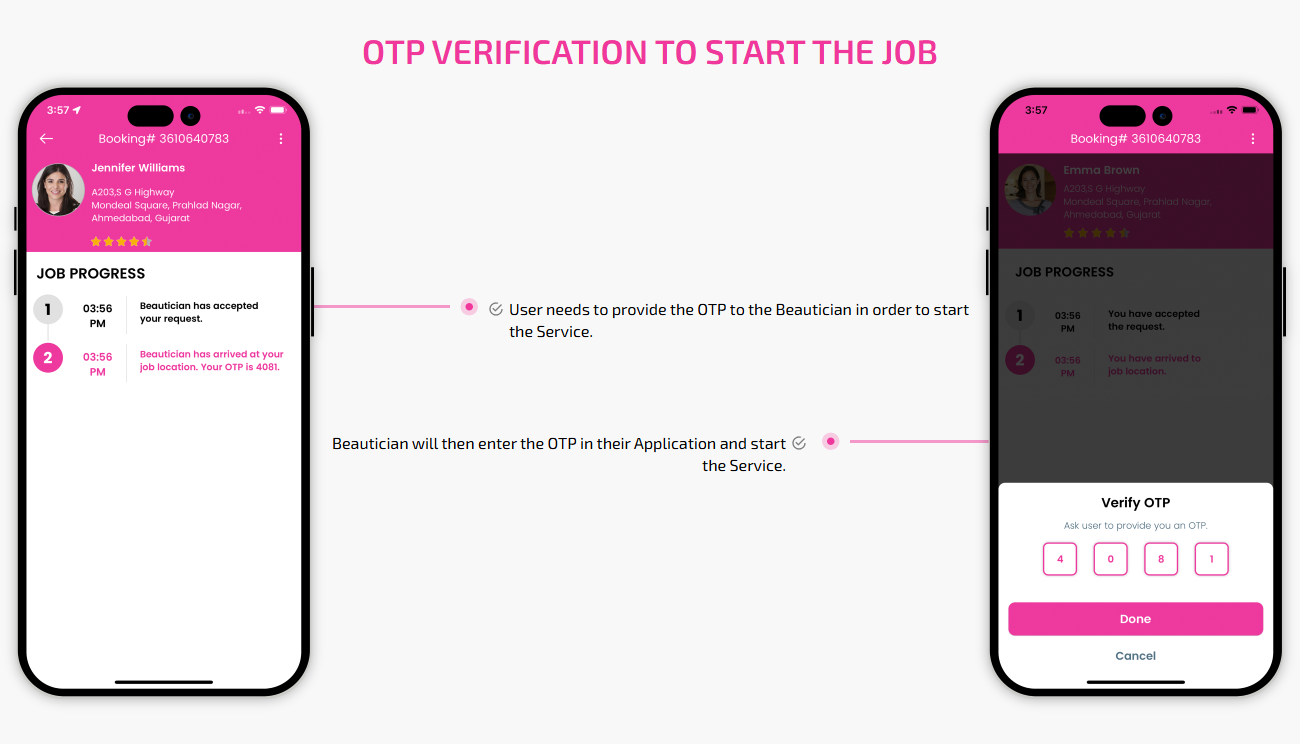SCREEN FLOW OF ON-DEMAND BEAUTICIAN WEB APP