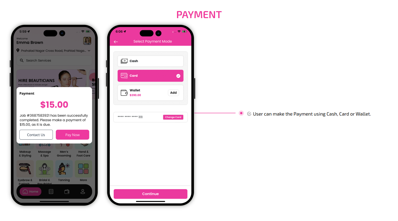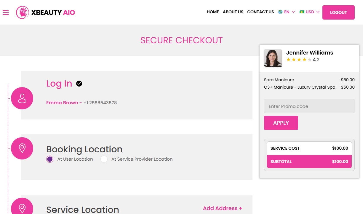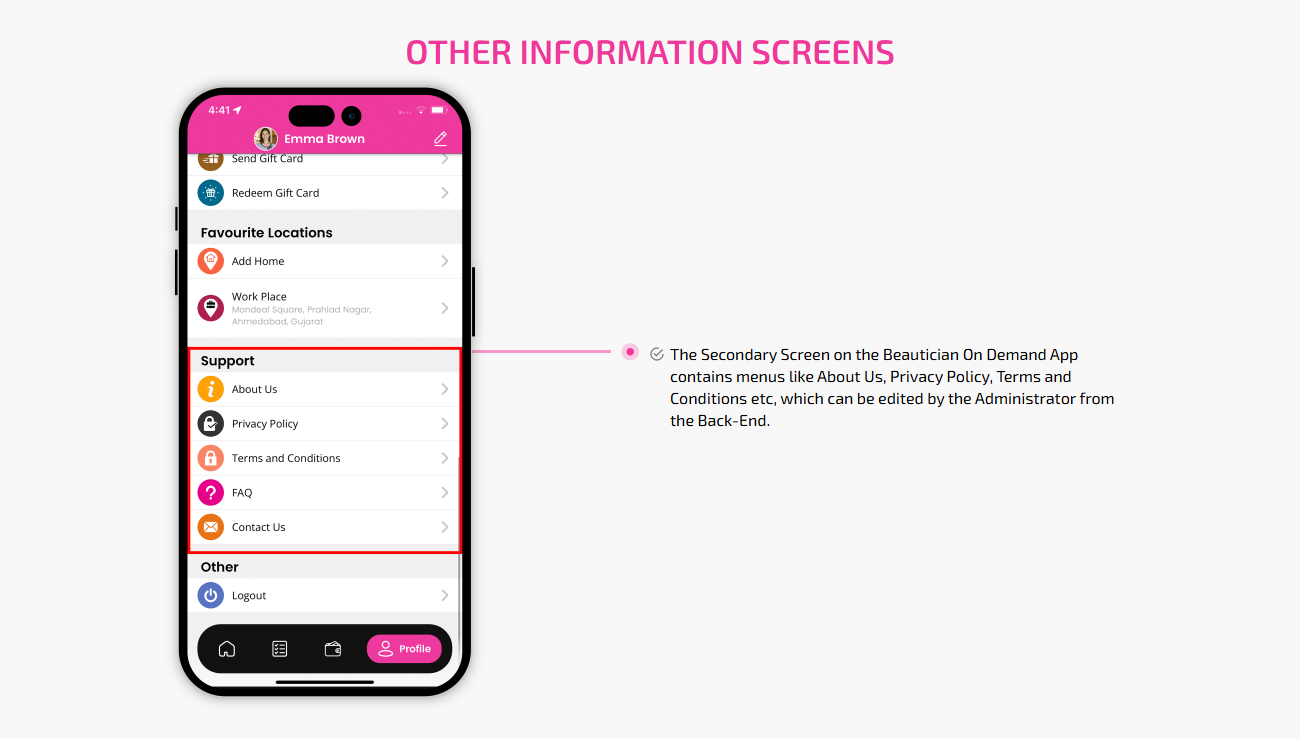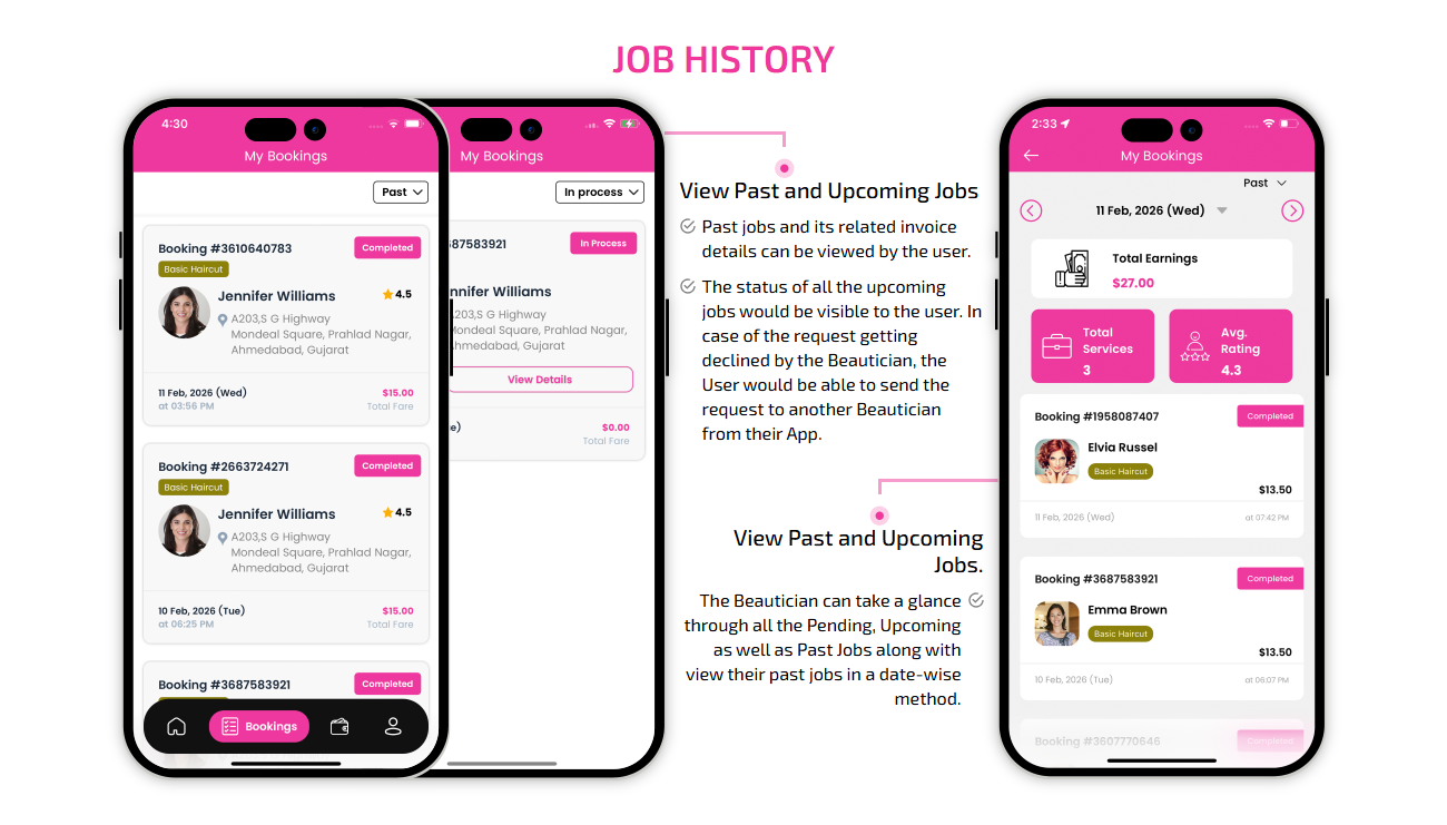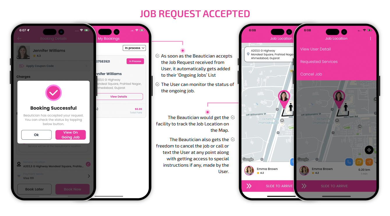 SCREEN FLOW OF ON-DEMAND BEAUTICIAN WEB APP