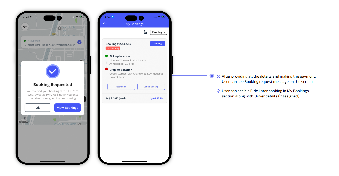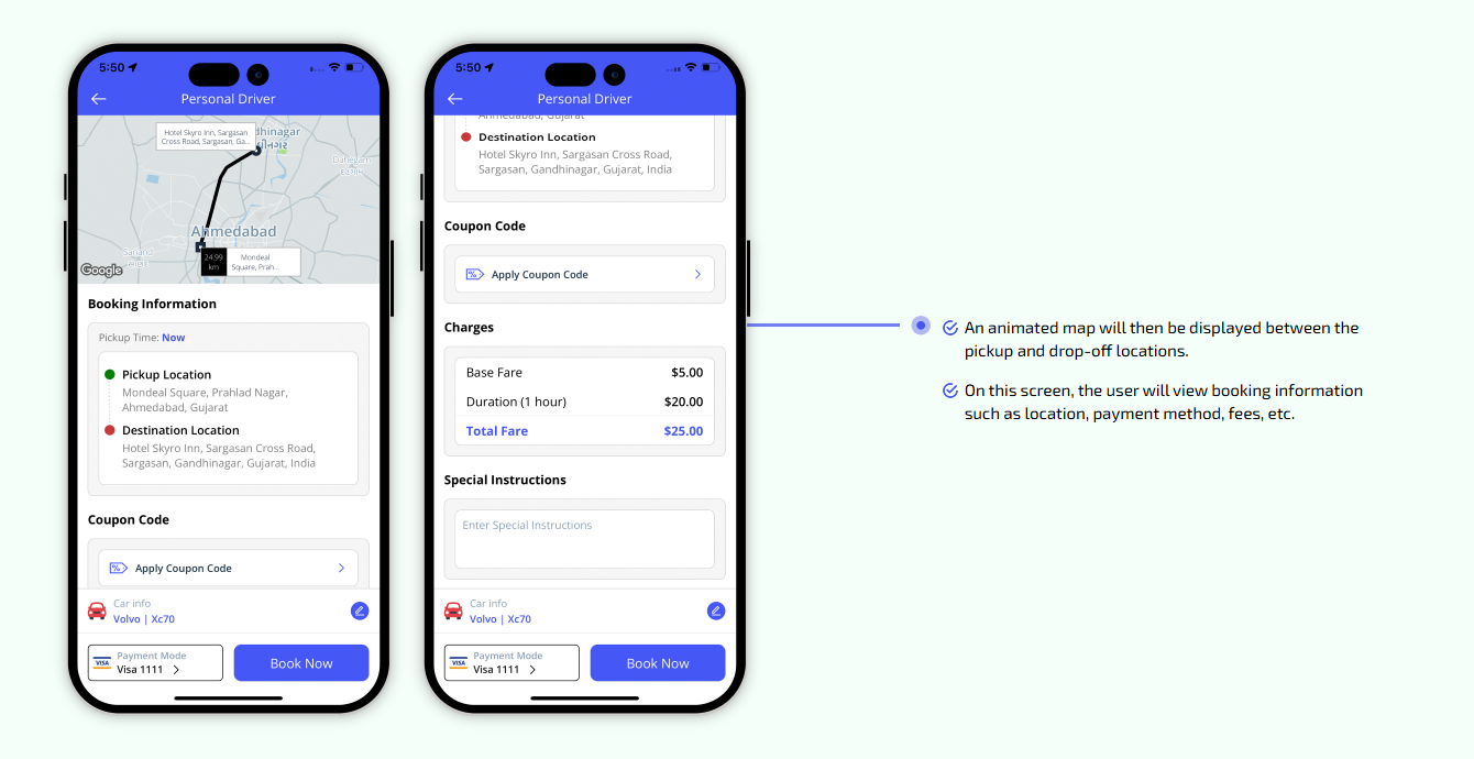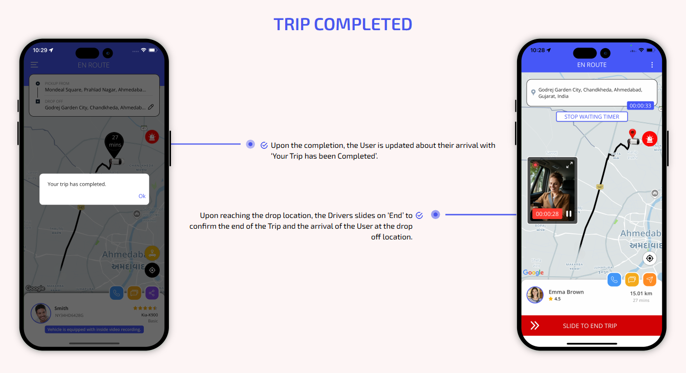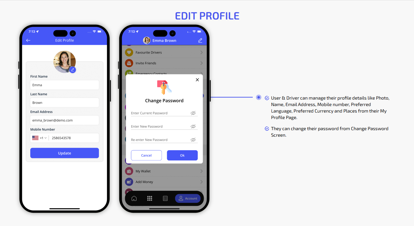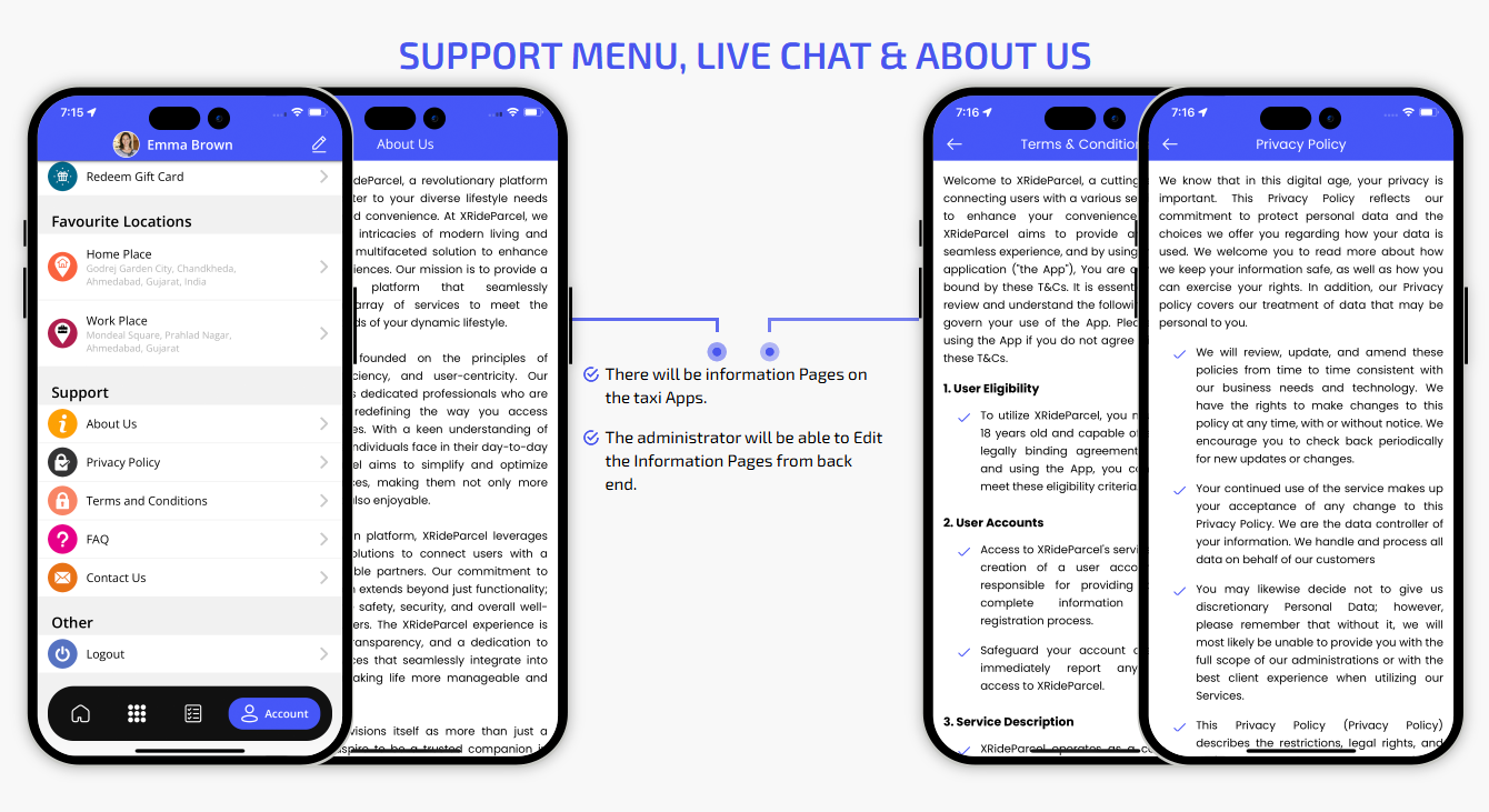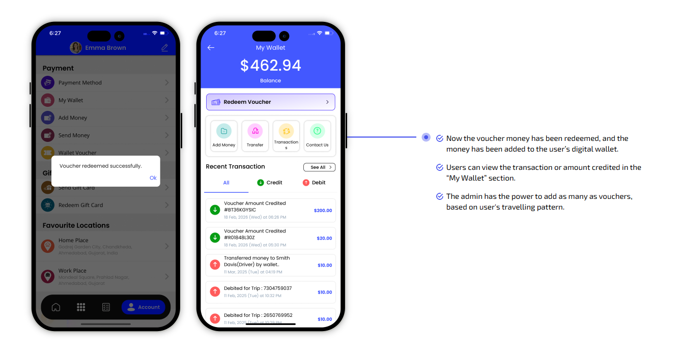 We provide different panels for users, drivers, and fleet organization. This user-friendly dashboard help manage their bookings, wallet, personal info, trip history and earnings and so forth. Look at the screenshots for more understanding.