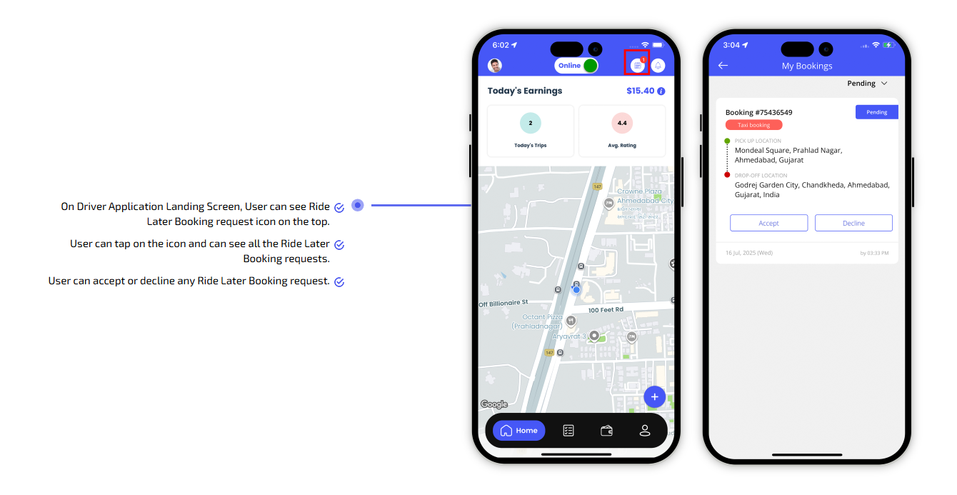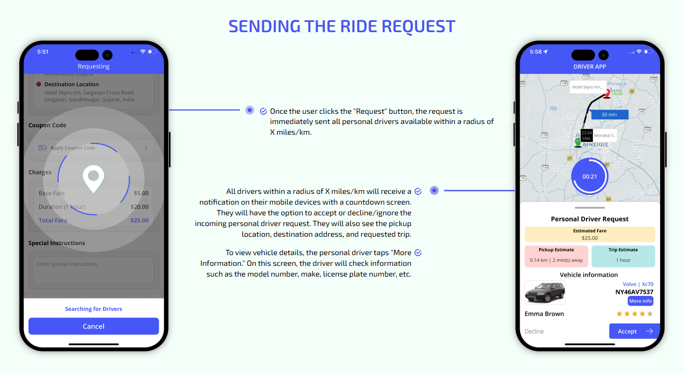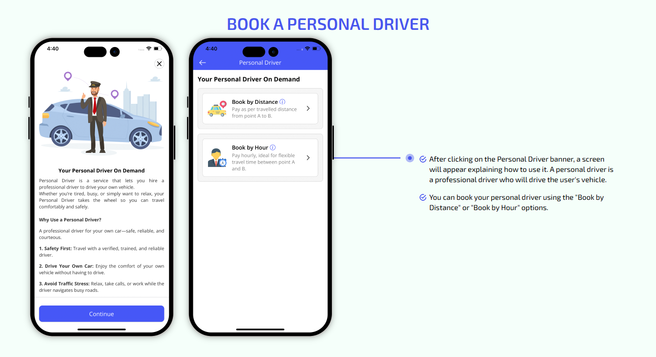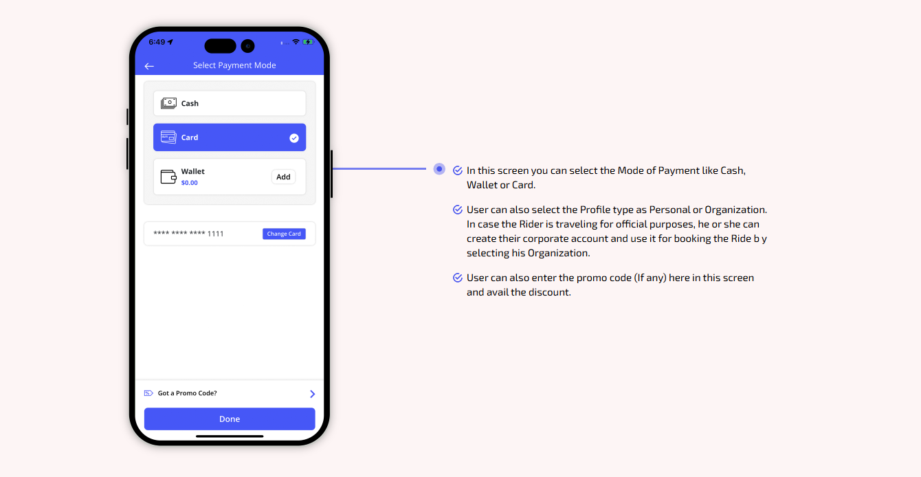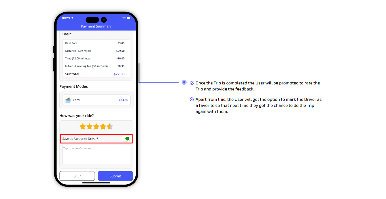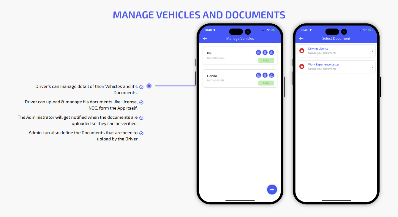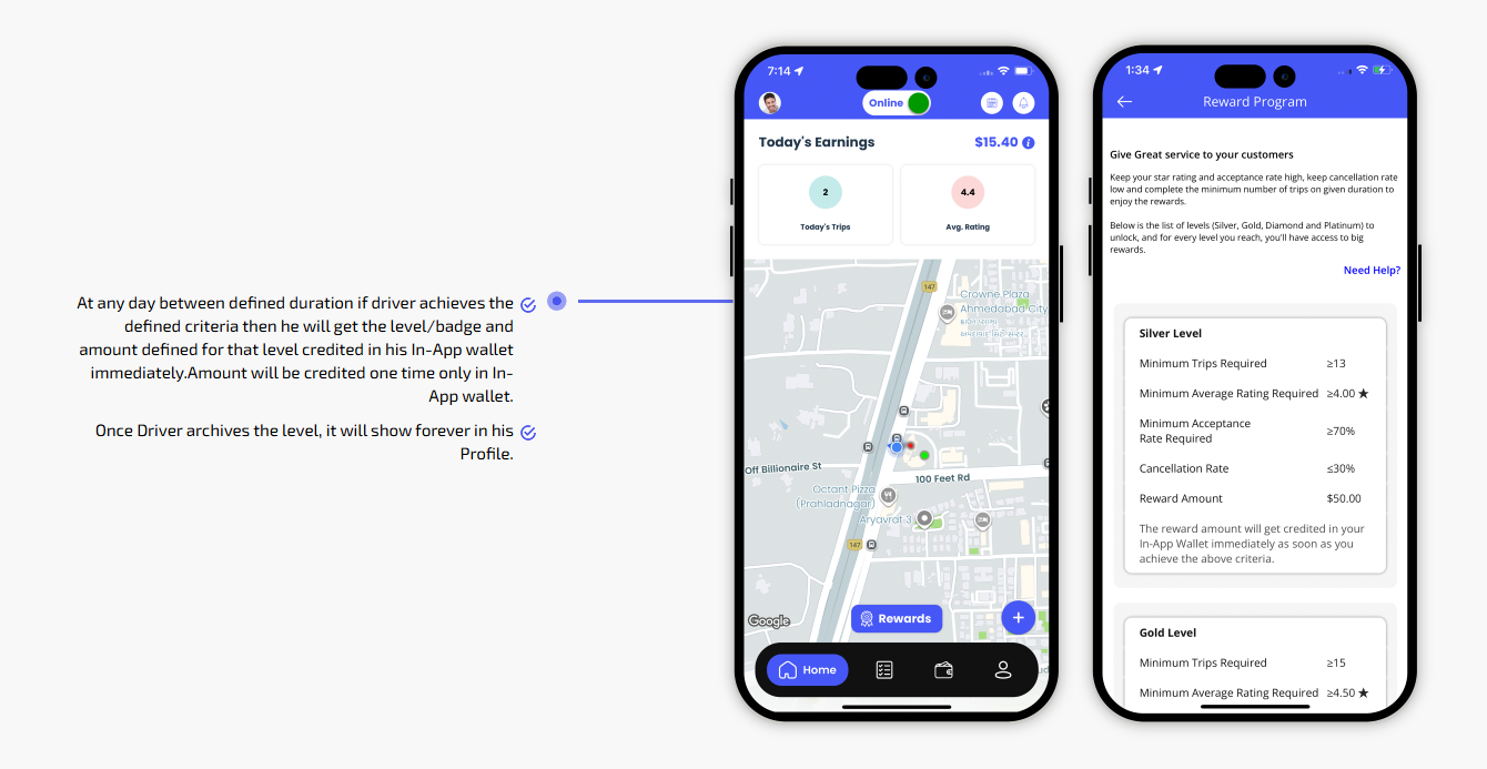 We provide different panels for users, drivers, and fleet organization. This user-friendly dashboard help manage their bookings, wallet, personal info, trip history and earnings and so forth. Look at the screenshots for more understanding.