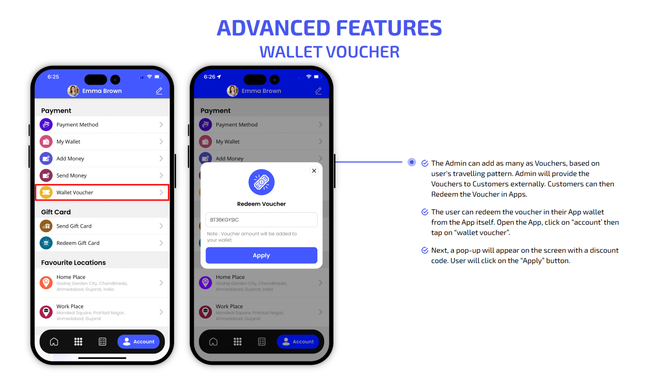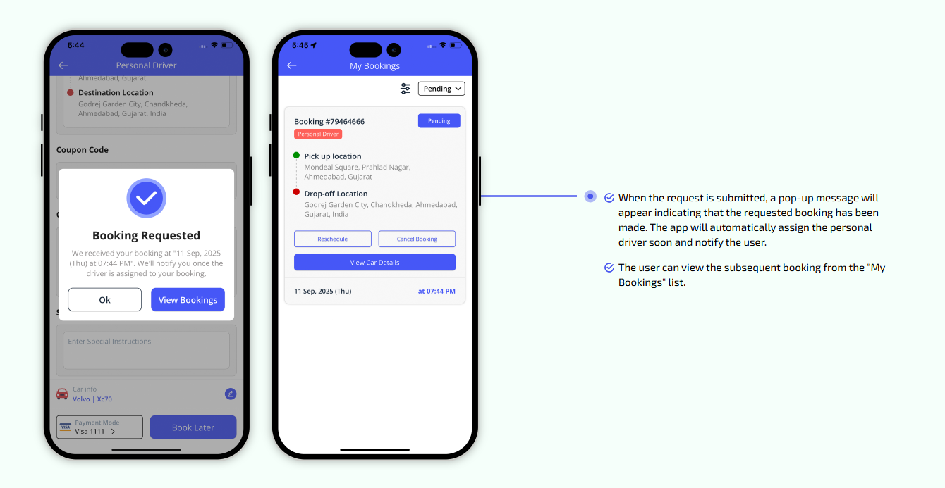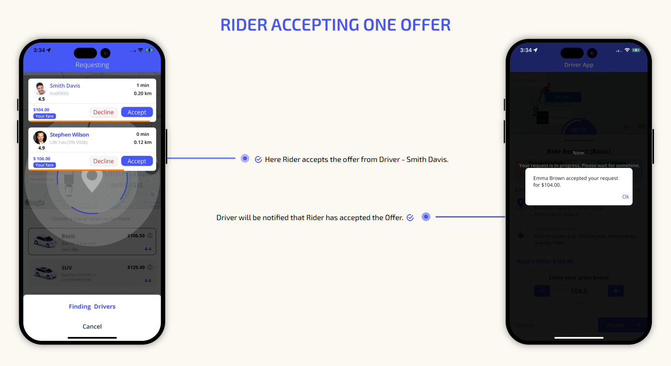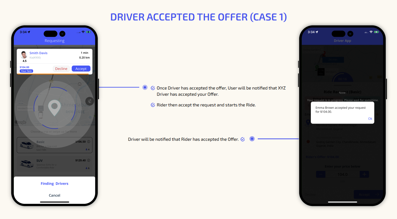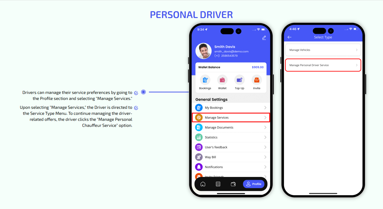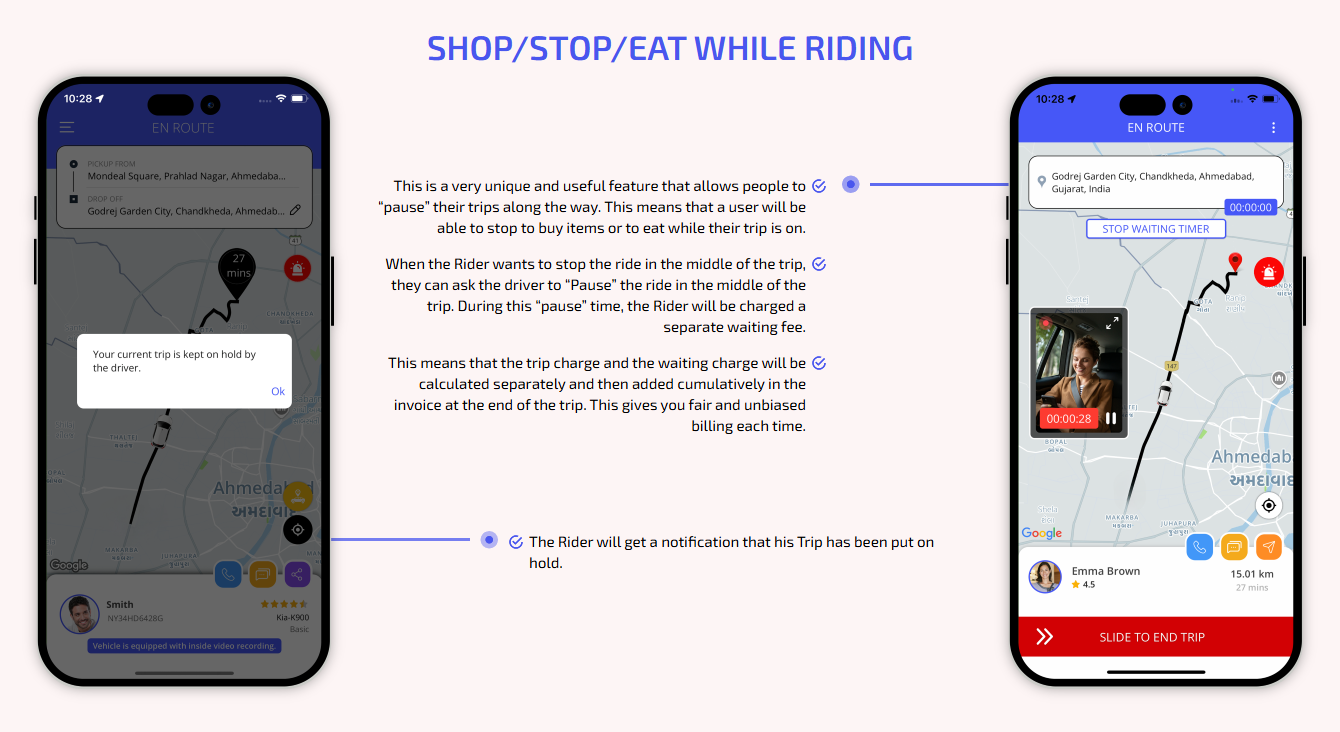 We provide different panels for users, drivers, and fleet organization. This user-friendly dashboard help manage their bookings, wallet, personal info, trip history and earnings and so forth. Look at the screenshots for more understanding.