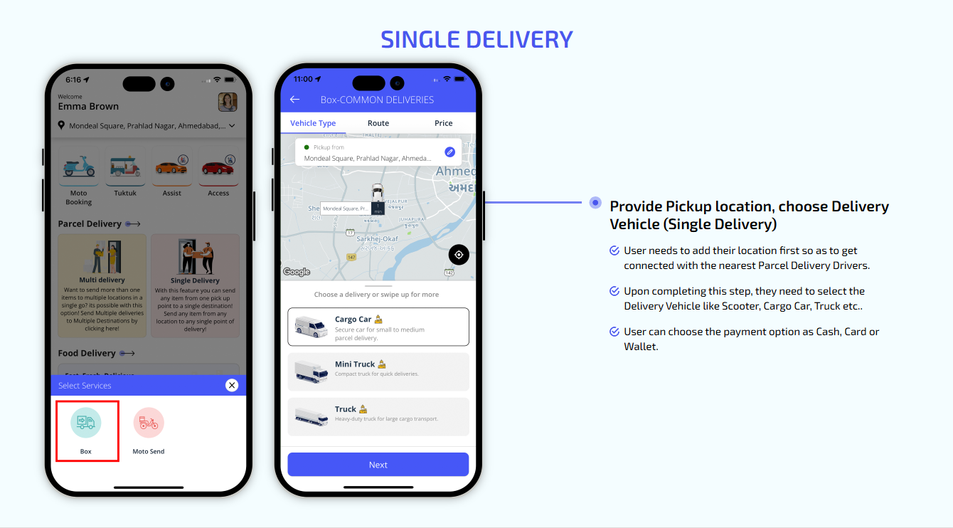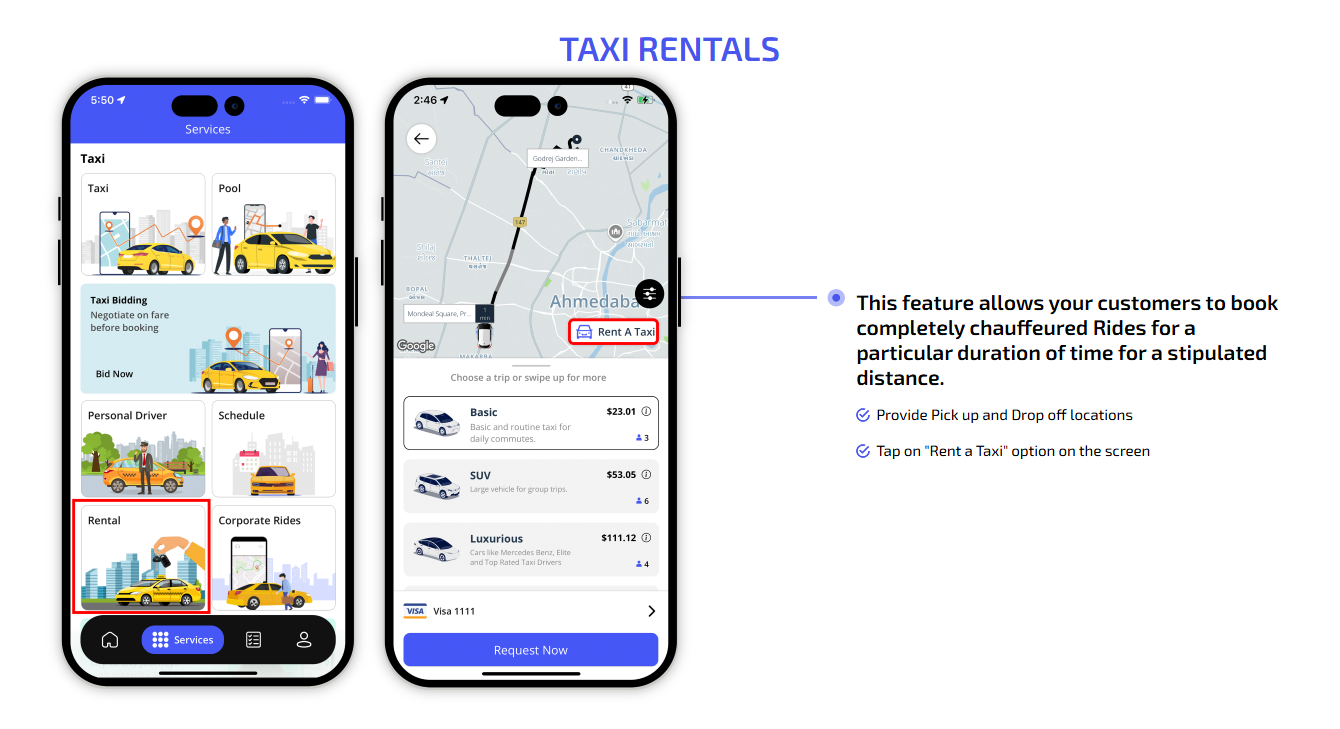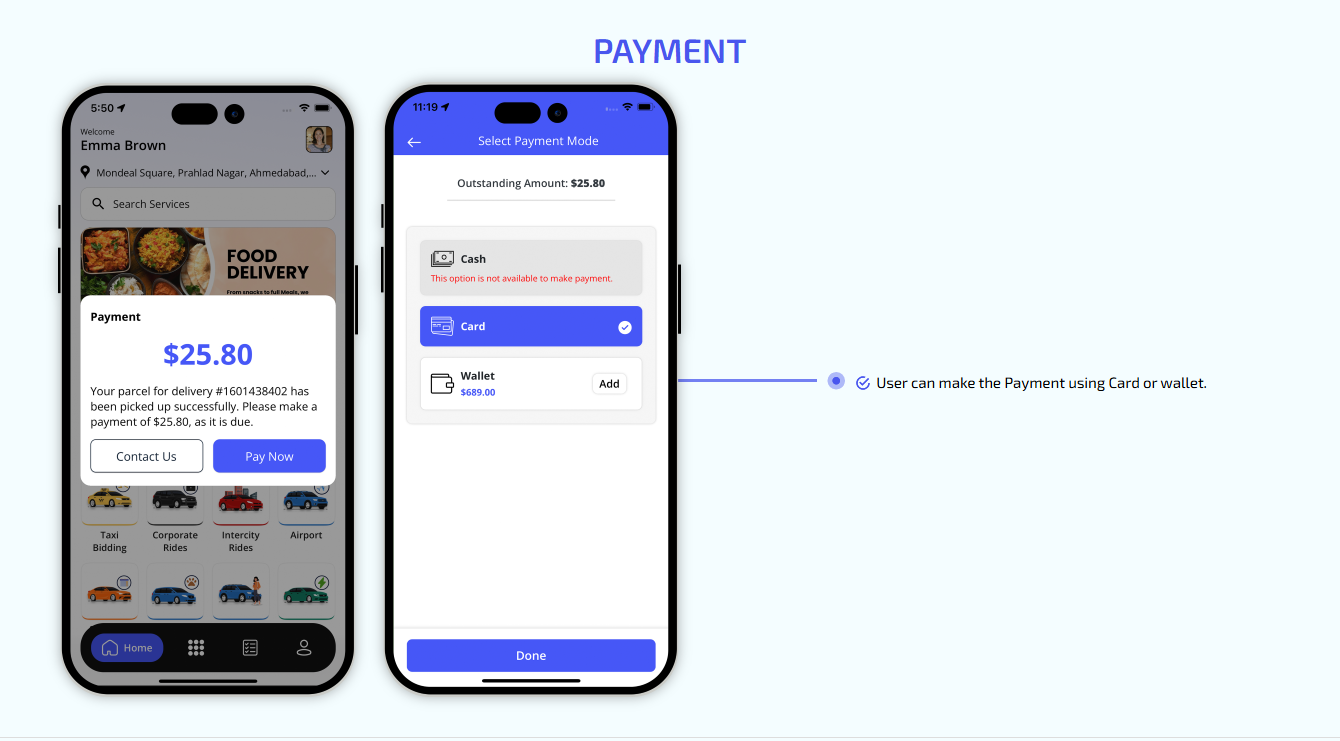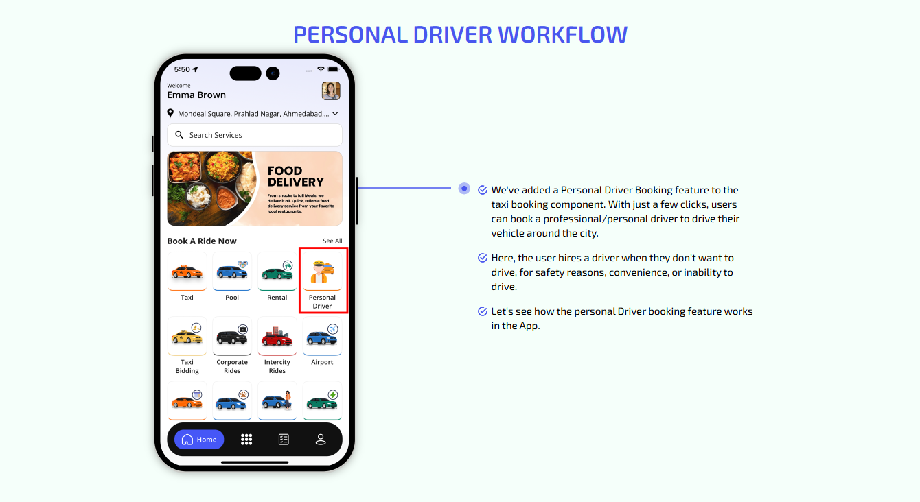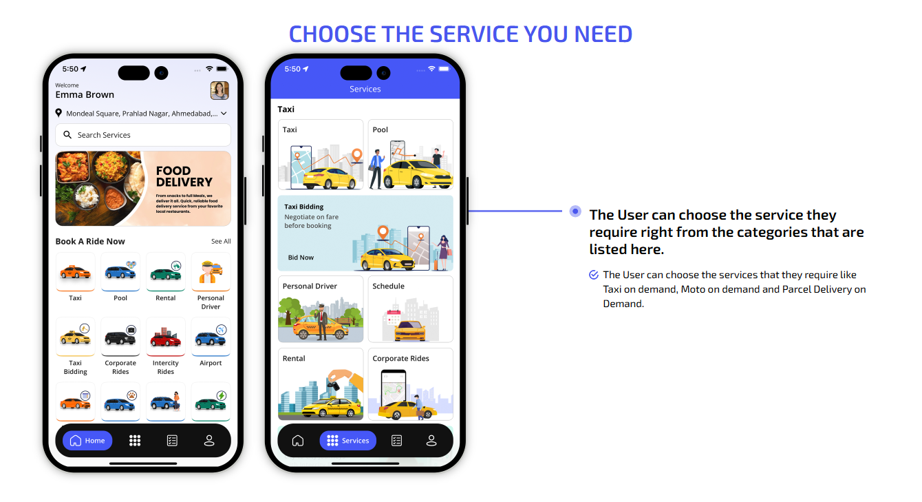 We offer users web taxi booking, food delivery, where they can register and request a ride. This is perfect for users who prefer booking from their desktops or browsers.