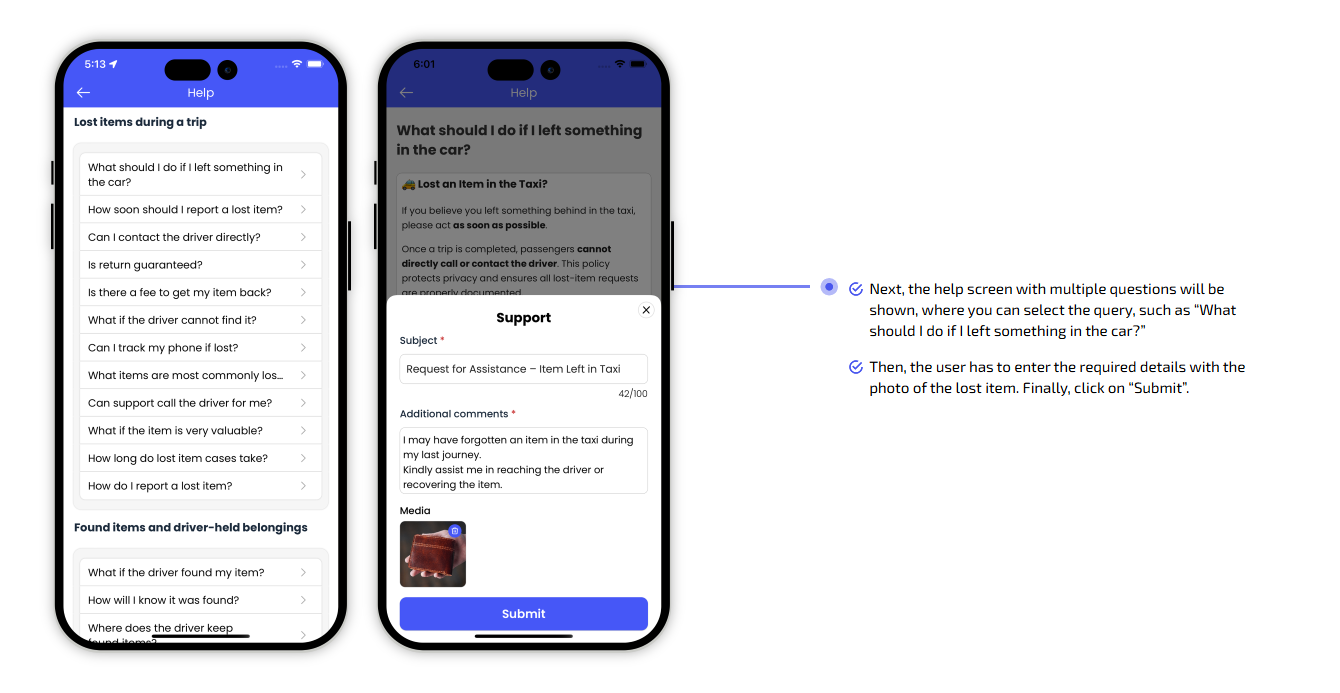 This Panel is perfect for managing phone taxi bookings or helping people who aren’t tech-savvy. It is ideal for call-based support users who prefer a human touch. Your team can manually input taxi ride details and assign a driver.